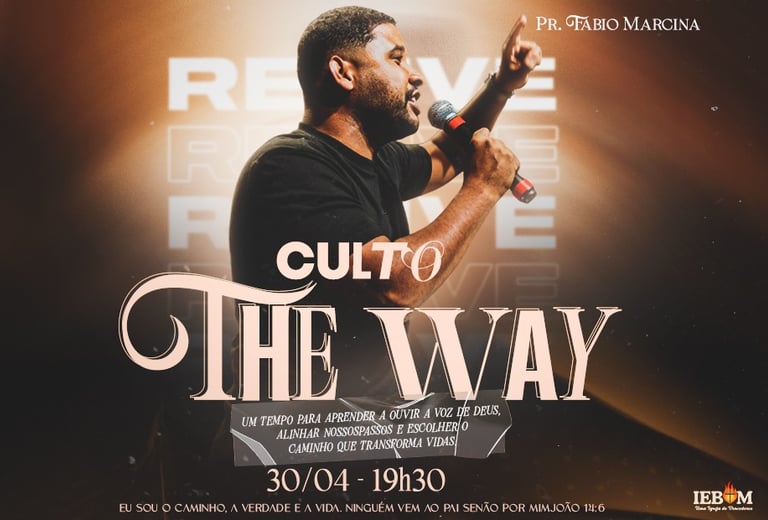 A Igreja Batista IEBOM convida você para participar do The Way – O Caminho, o culto de jovens preparado especialmente para uma geração que deseja conhecer mais a Deus e viver o propósito que Ele tem para suas vidas.