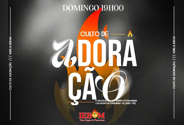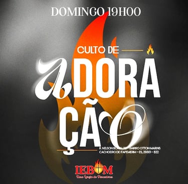 A Igreja Batista IEBOM convida cordialmente todos para o Culto de Adoração, um momento dedicado à exaltação a Deus, à comunhão cristã e ao fortalecimento da fé. O culto é marcado por louvor, adoração e ministração da Palavra, proporcionando edificação espiritual e renovação.